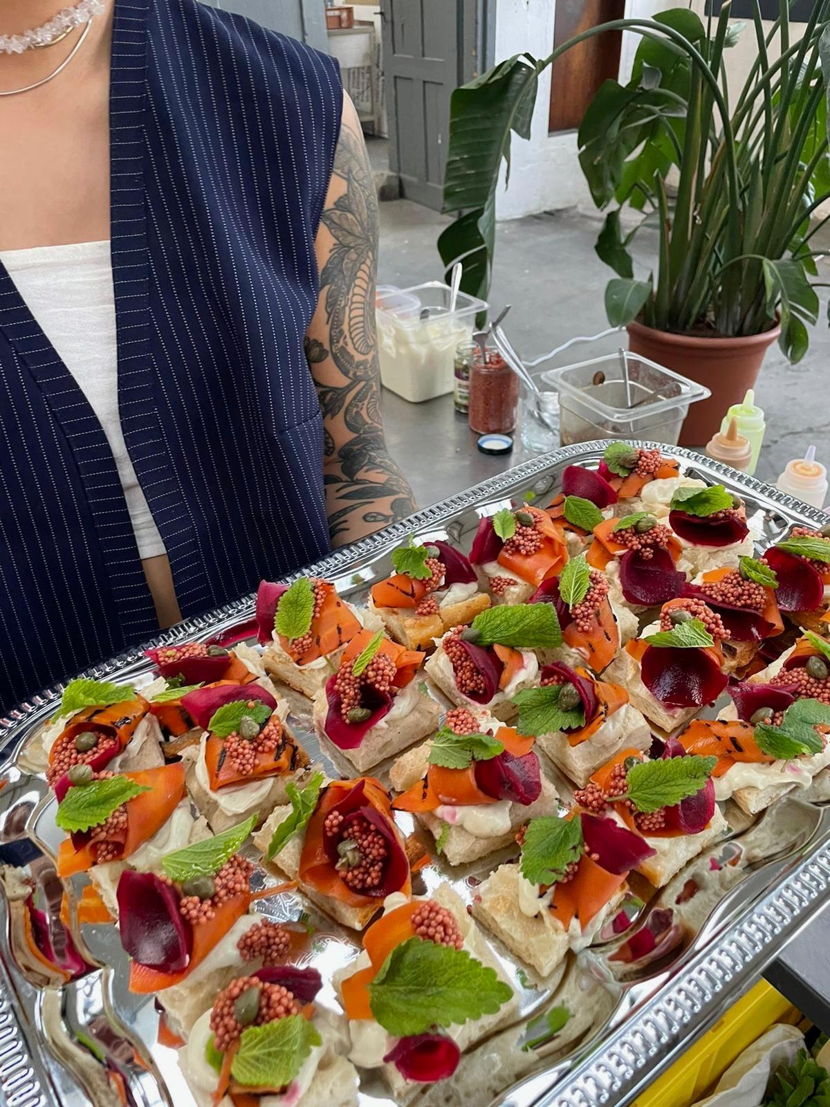 Gemeinsam mit rund zwanzig Gästen nehmt ihr an einer langen gedeckten Tafel Platz. Zur Begrüßung erwartet euch ein erfrischendes Willkommensgetränk (Kombucha, hausgemachte Limonade oder Wasser) und taucht bei einer kurzen Einführung in den Mikrofarm-Kosmos ein, wo nachhaltige, regionale und saisonale Blumen im Mittelpunkt stehen.